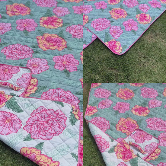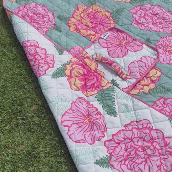 Our beloved beach mat is now better than ever in the stunning new Hibiscus & Kupukupu design (made by tuberose designs). Inspired by the vibrant beauty of island florals and lush greenery.
